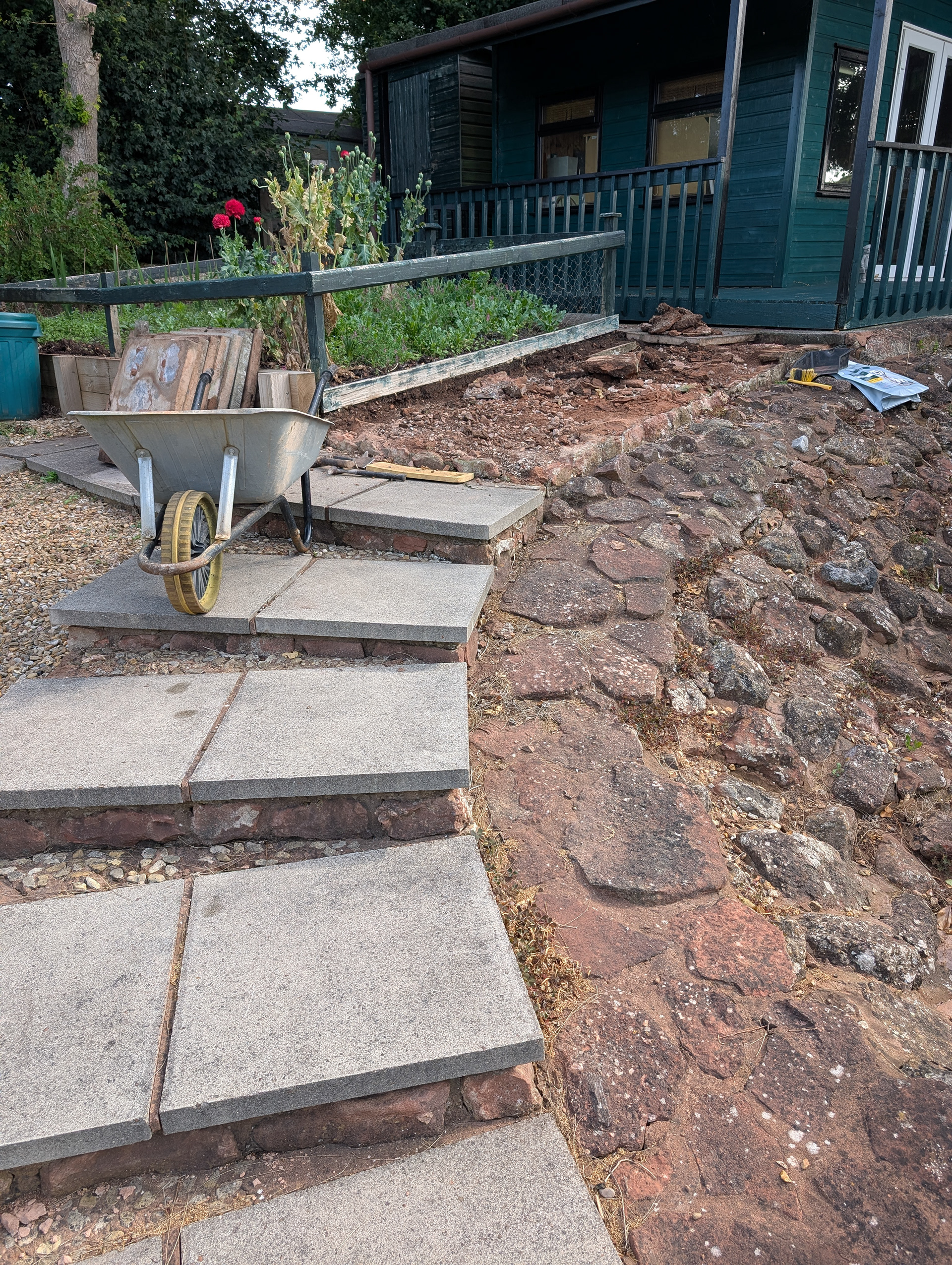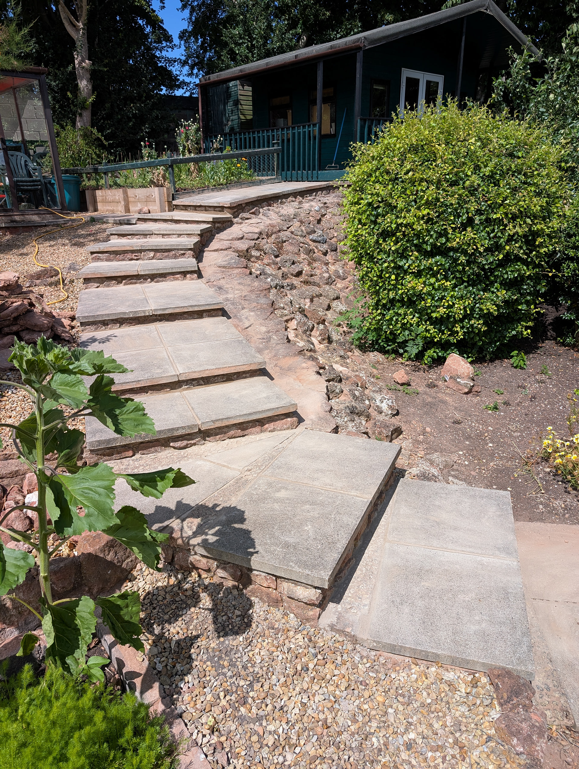 Every step wobbled. On closer inspection, each one had been laid on top of poor sand-to-cement-ratio blobs floating in loose sand. There was no alternative but to re-lay them all.