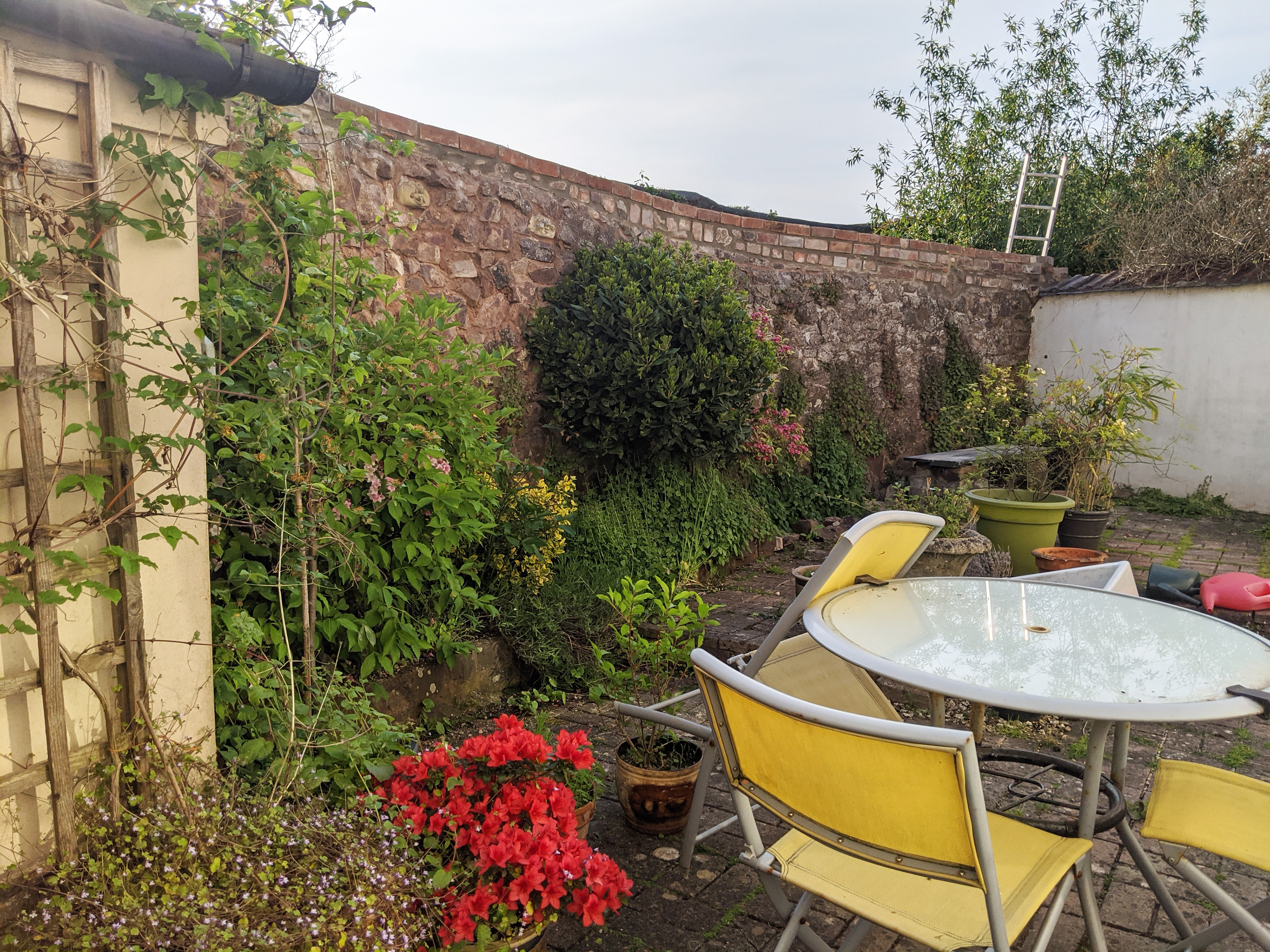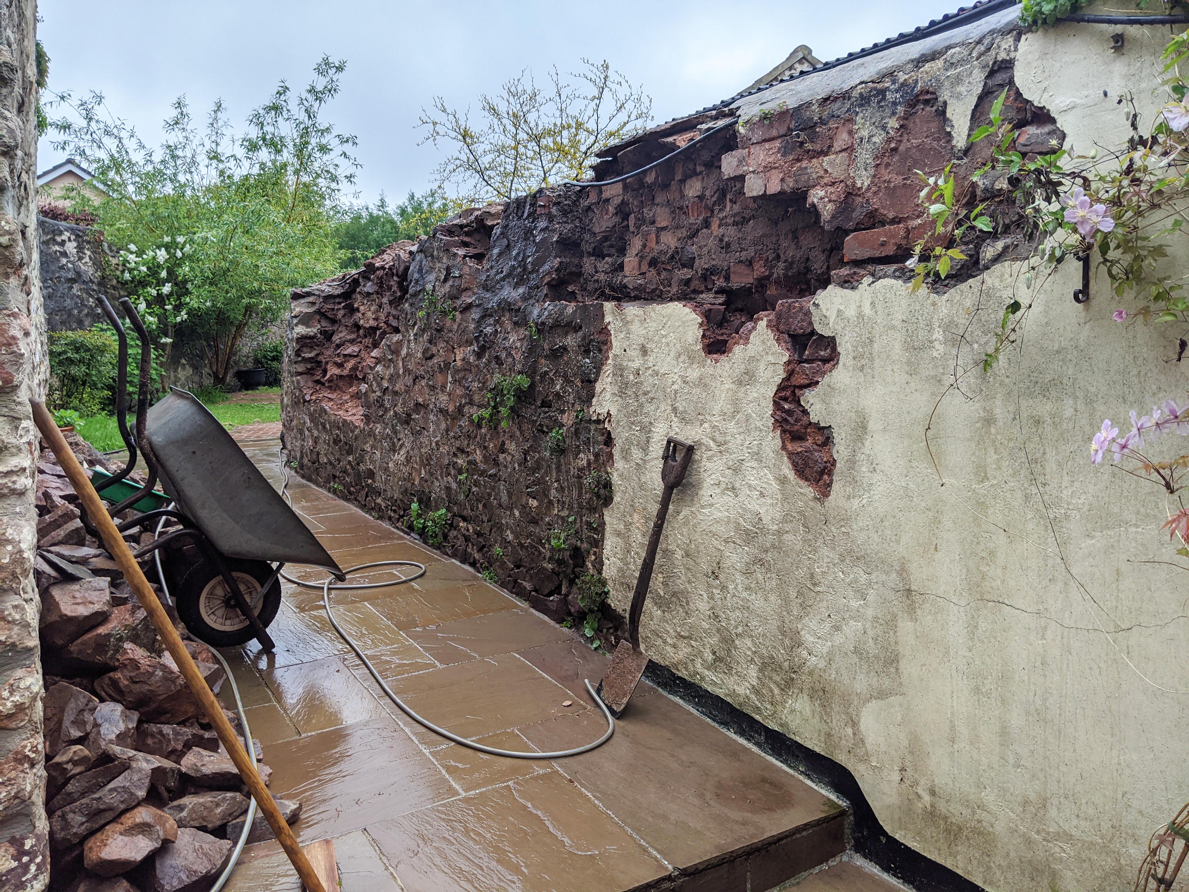 This damp, unstable back garden wall was hiding a hotchpotch of 200 years of functions. Because parts of it were sound, I made a feature of its history, using different mortar mixes to match its phases of development.