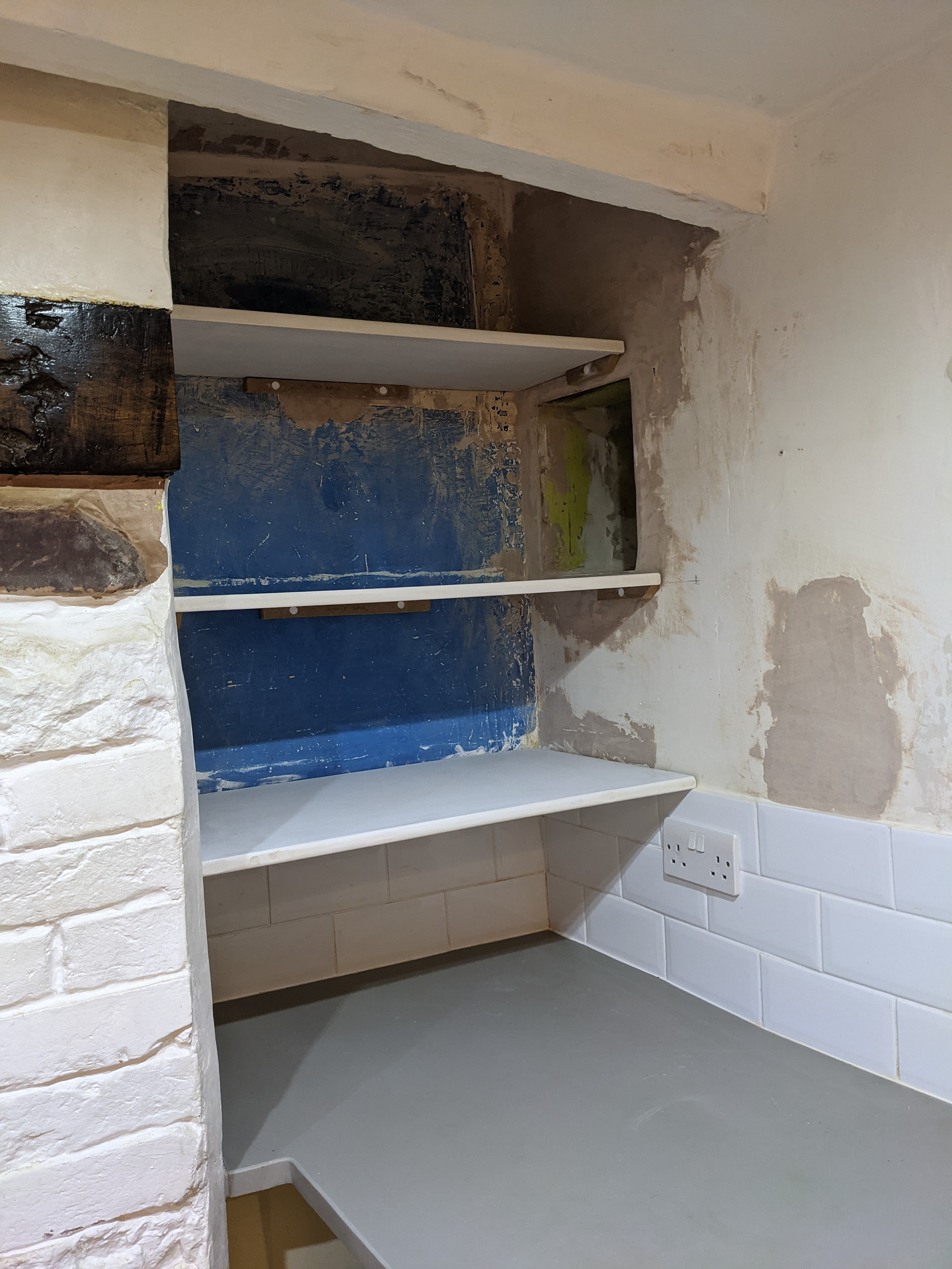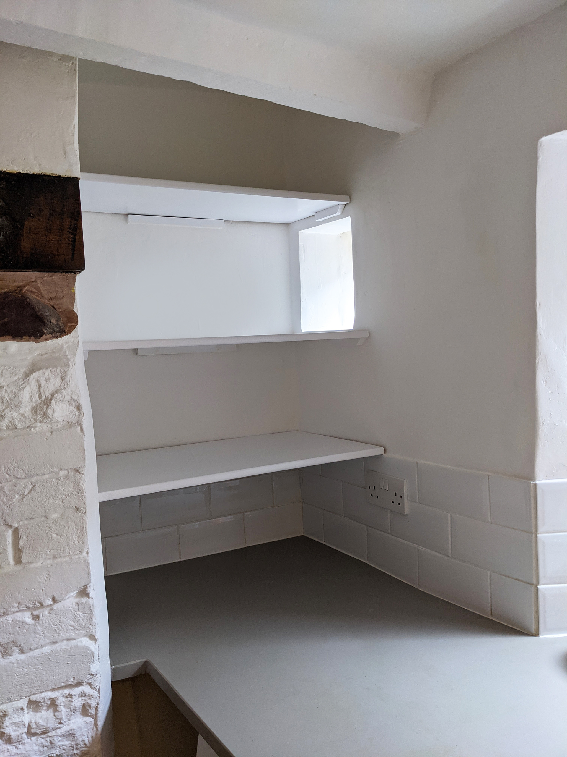 This was a small but satisfying painting and decorating job, which included fitting 3 kitchen shelves without compromising a small window.