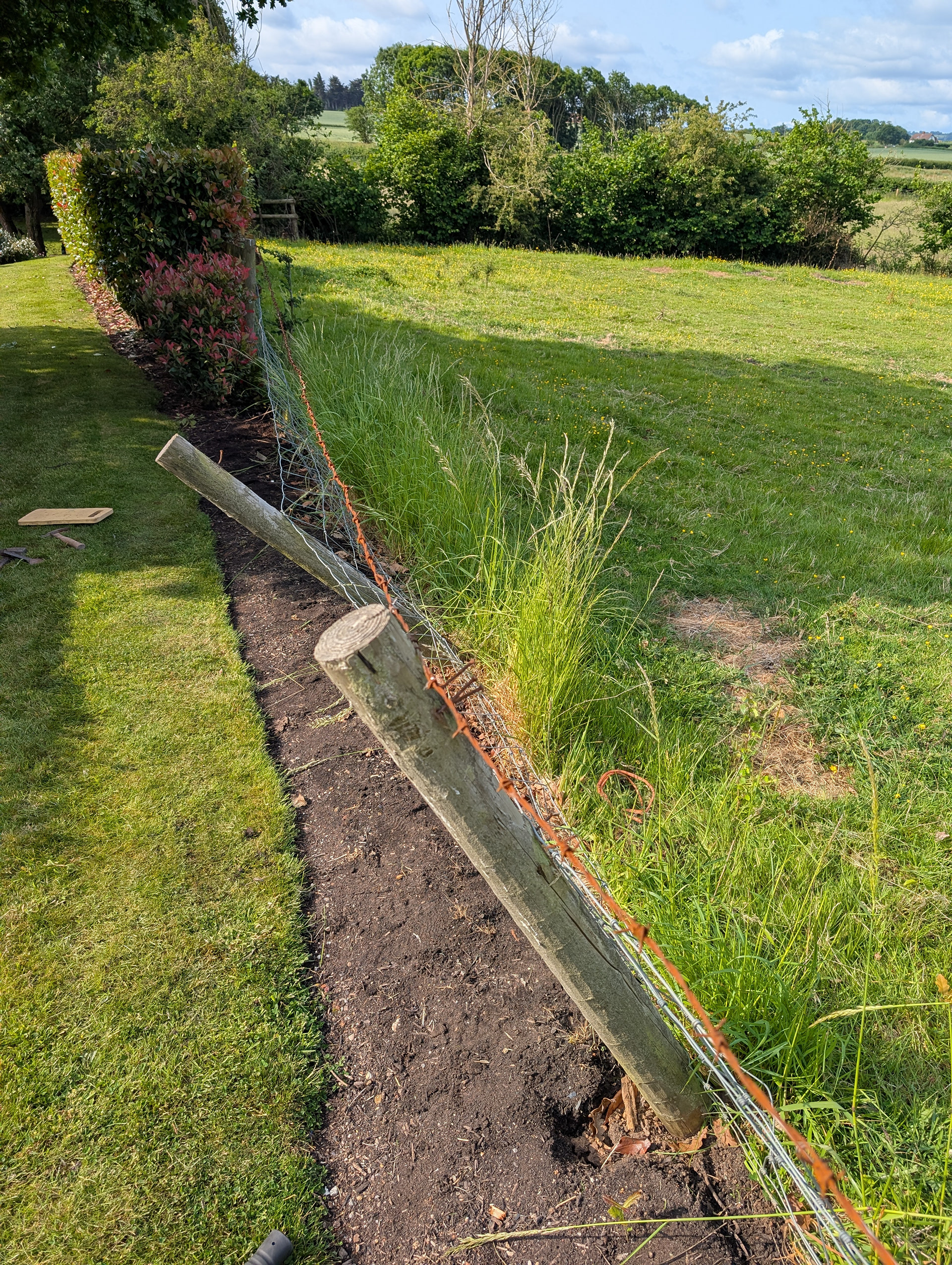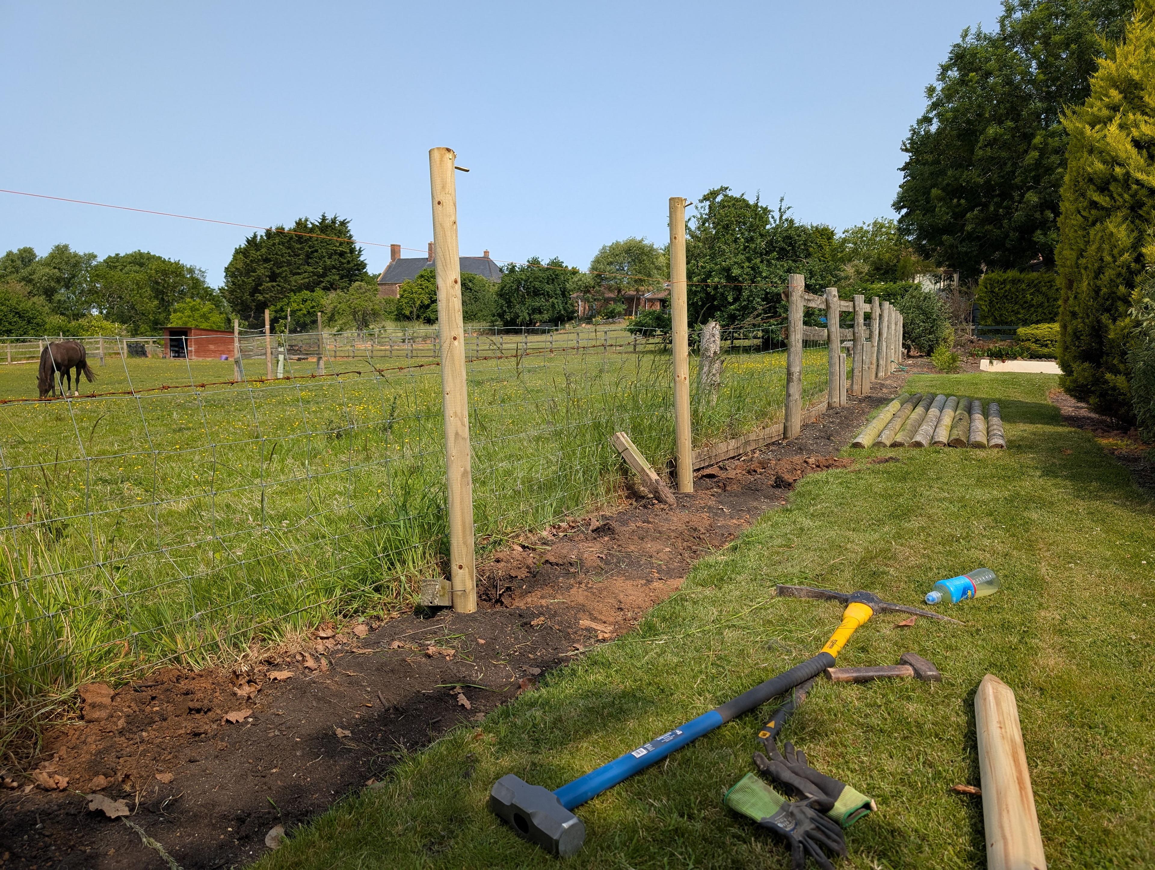 A charming old fence had collapsed due to 6 rotten stake posts. The rails were sound, so I just replaced the posts.